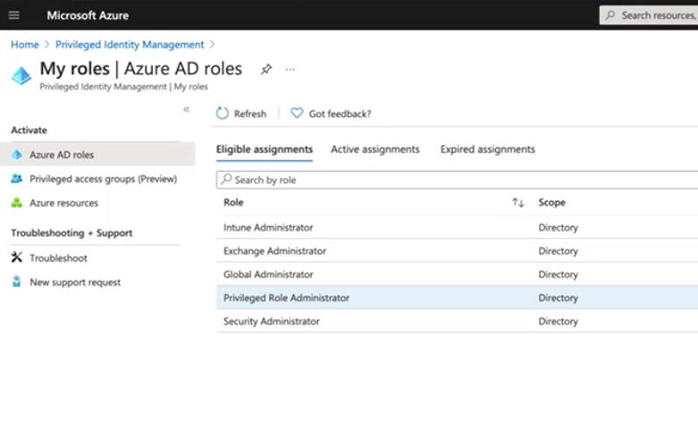 In cases where you need to take on a temporary administrator role to complete a specific task, you can set this up in PIM also.